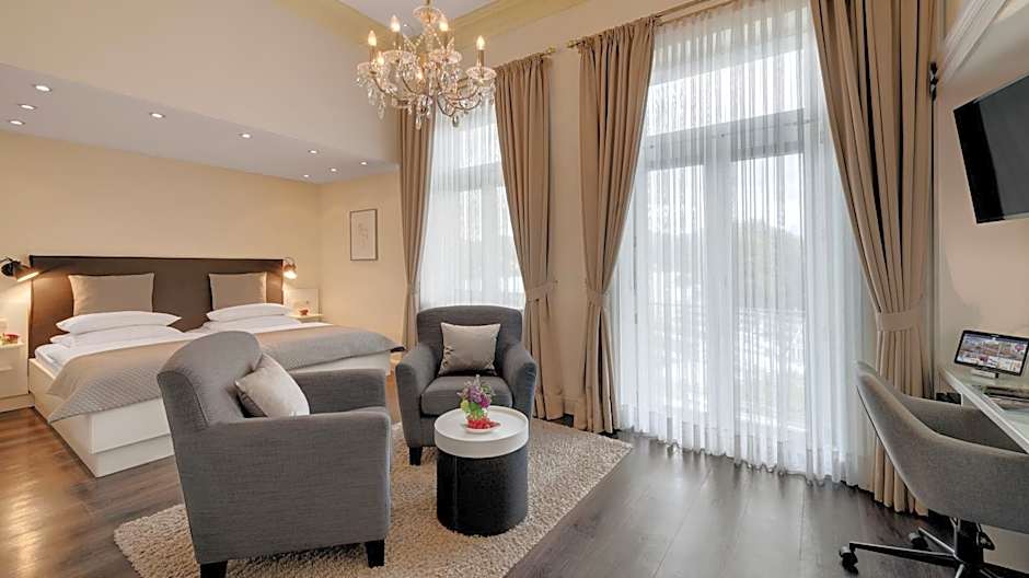 This very spacious room offers a separate living area, and a balcony with views of the River Rhine.